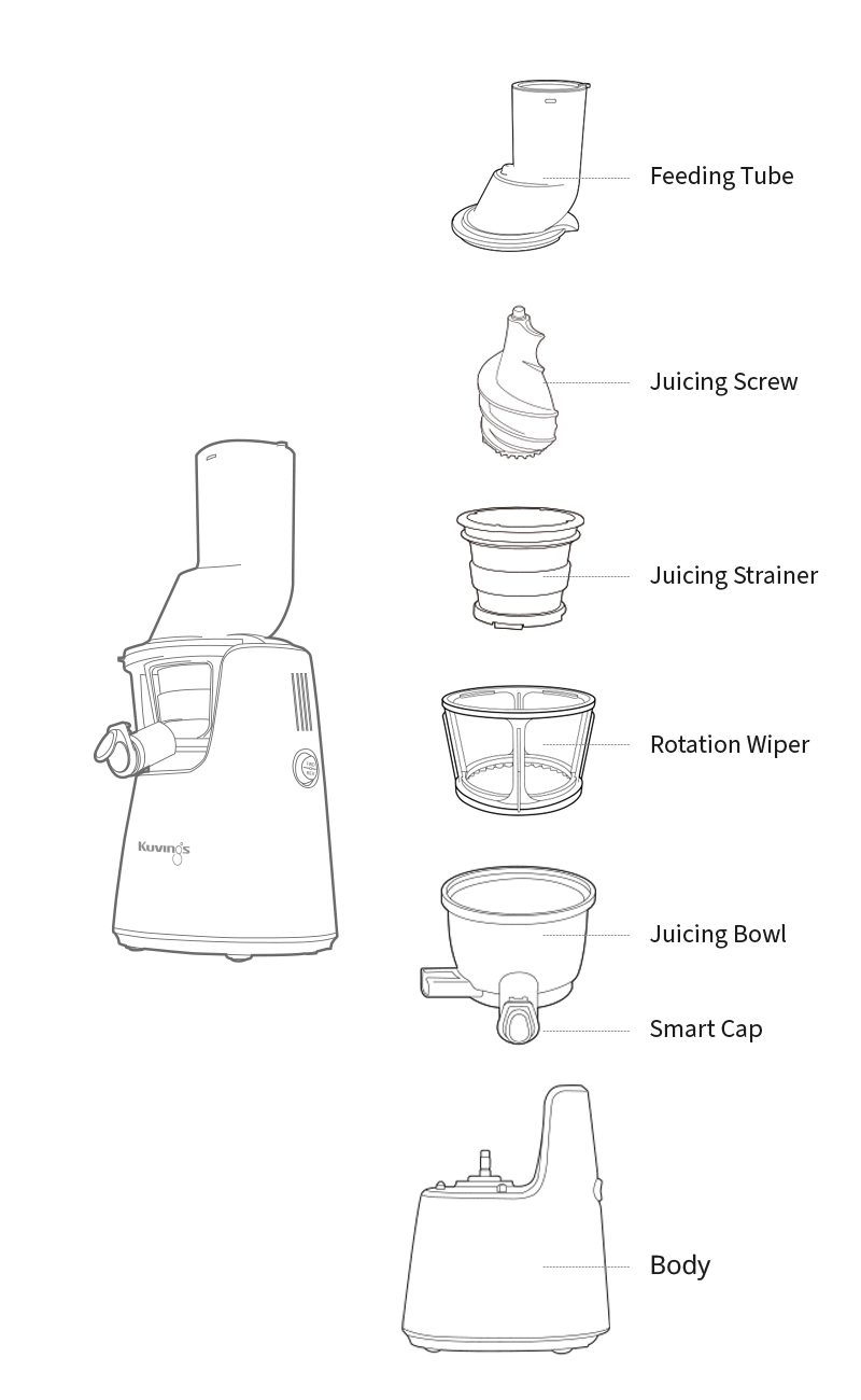 The Kuvings C7000 uses slow-squeezing technology(JMCS) to gently extract juice from fruits, vegetables, and nuts.