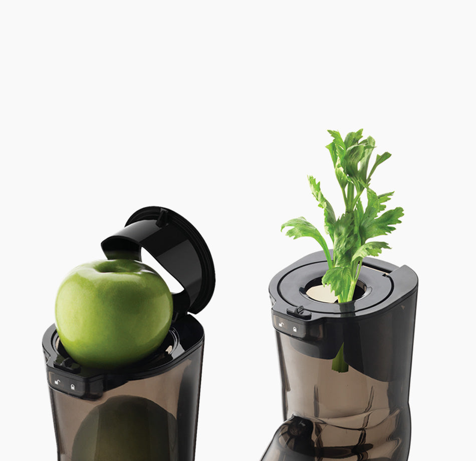 Kuvings Whole Slow Juicers adalah slow juicer dengan proses pengunyahan yang dilengkapi dengan corong masukan yang lebar untuk menampung seluruh bahan. Tidak diperlukan banyak pemotongan, sehingga menghemat waktu dan energi Anda. Kuvings adalah perusahaan pembuat jus pertama yang mematenkan desain ini.