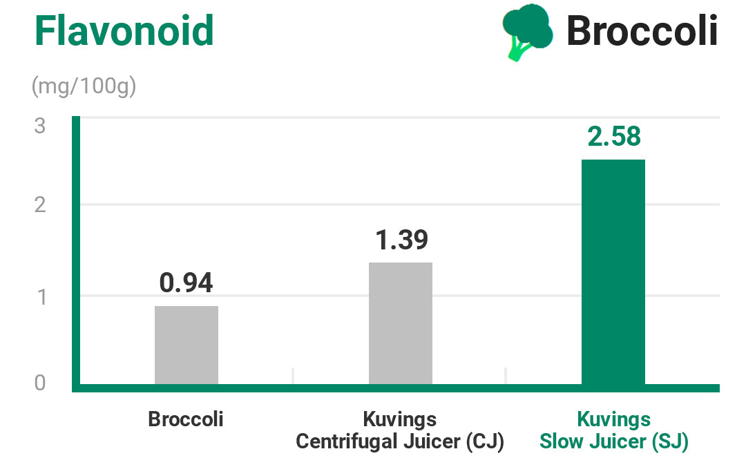 Flavonoid: Jus dari slow juicer mengandung 1,5 kali lebih banyak flavonoid dibandingkan jus dari juicer sentrifugal.