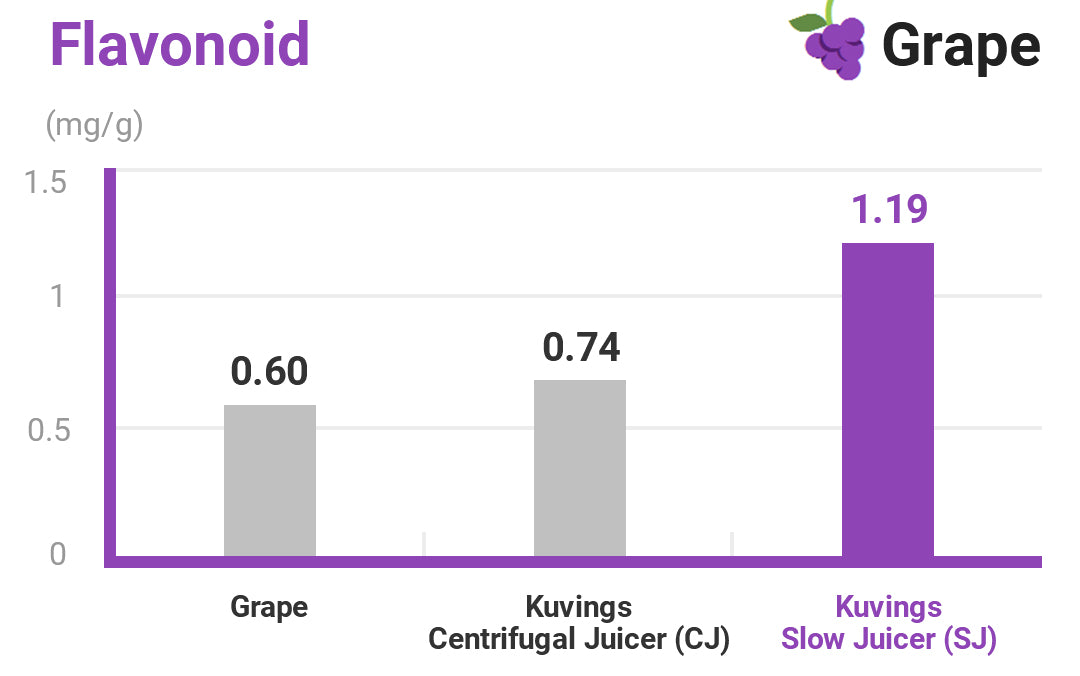 Jus yang diekstrak dengan slow juicer memiliki kandungan flavonoid tertinggi karena ekstraksi dari kulit dan biji anggur.