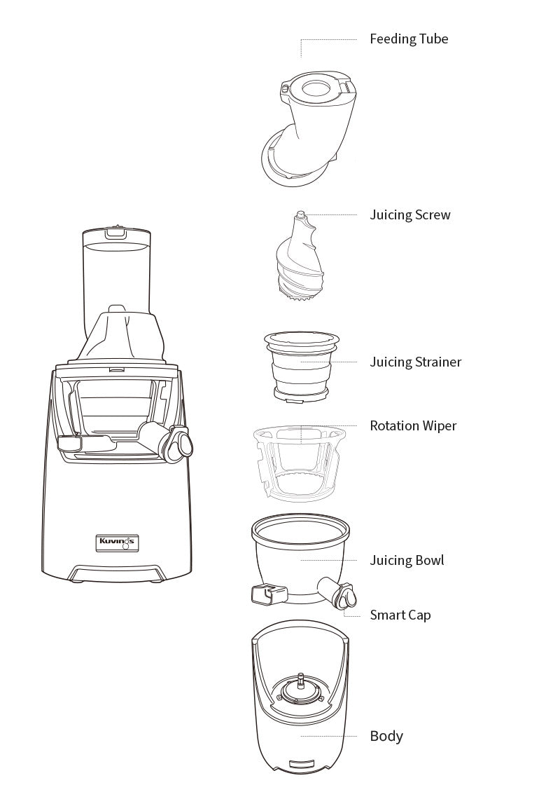 - Juicer Kuvings menyeragamkan sel tanaman dalam proses memeras bahan dengan lembut sehingga dapat diserap 3,8 kali lebih cepat oleh tubuh dan nutrisi pada buah dan sayuran.