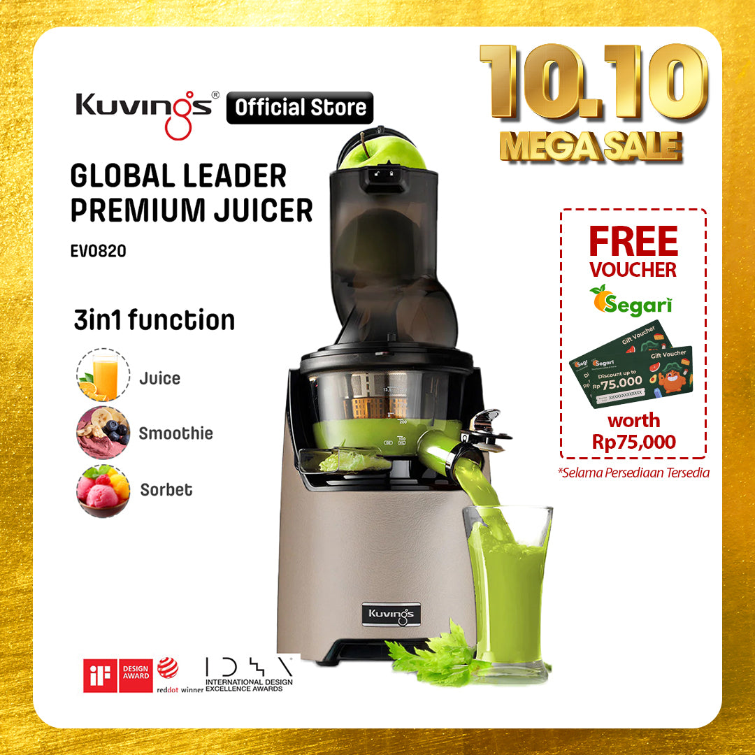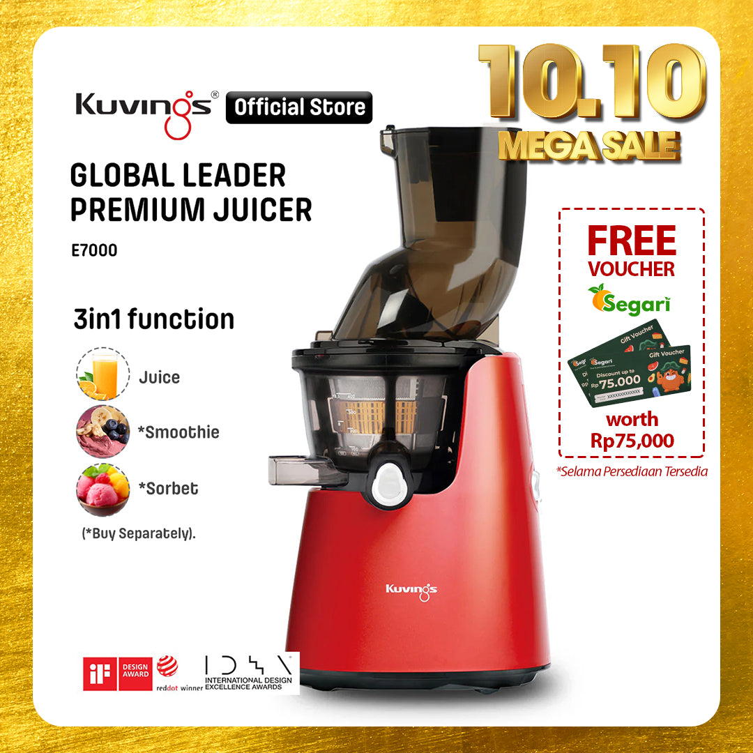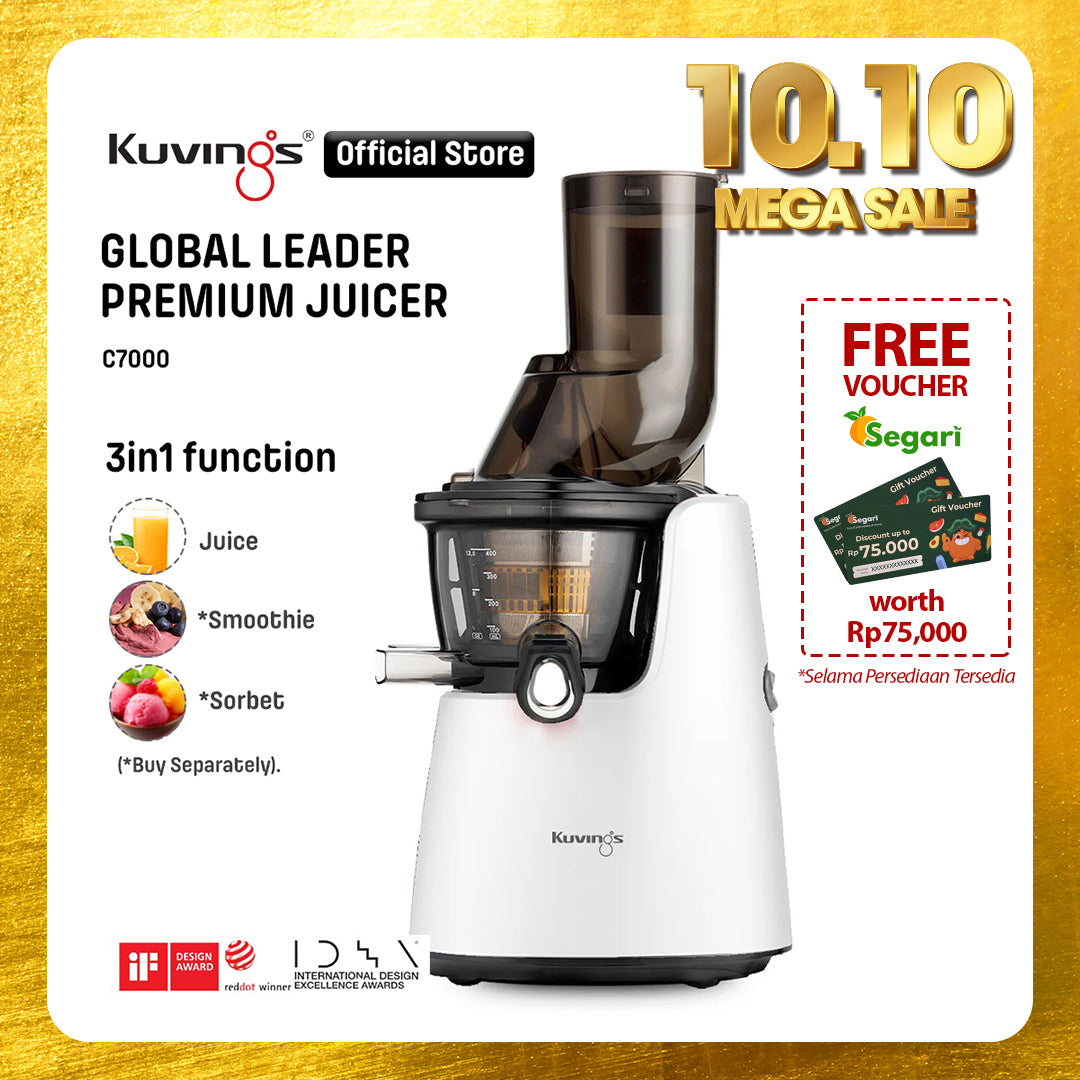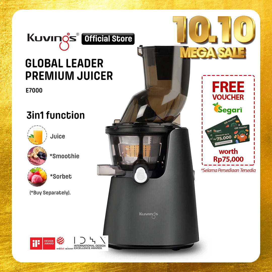 - Juicer Kuvings menyeragamkan sel tanaman dalam proses memeras bahan dengan lembut sehingga dapat diserap 3,8 kali lebih cepat oleh tubuh dan nutrisi pada buah dan sayuran.