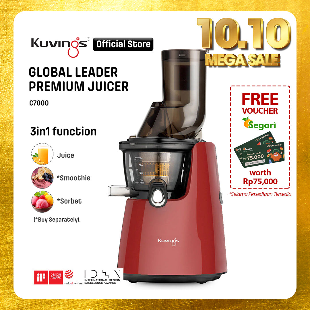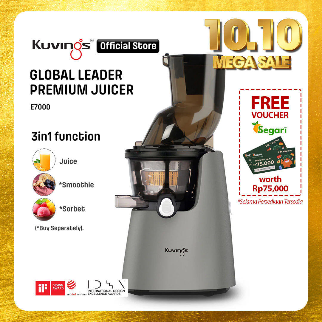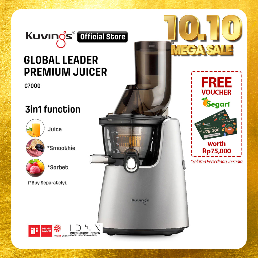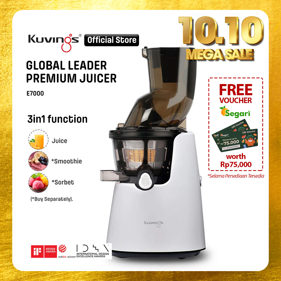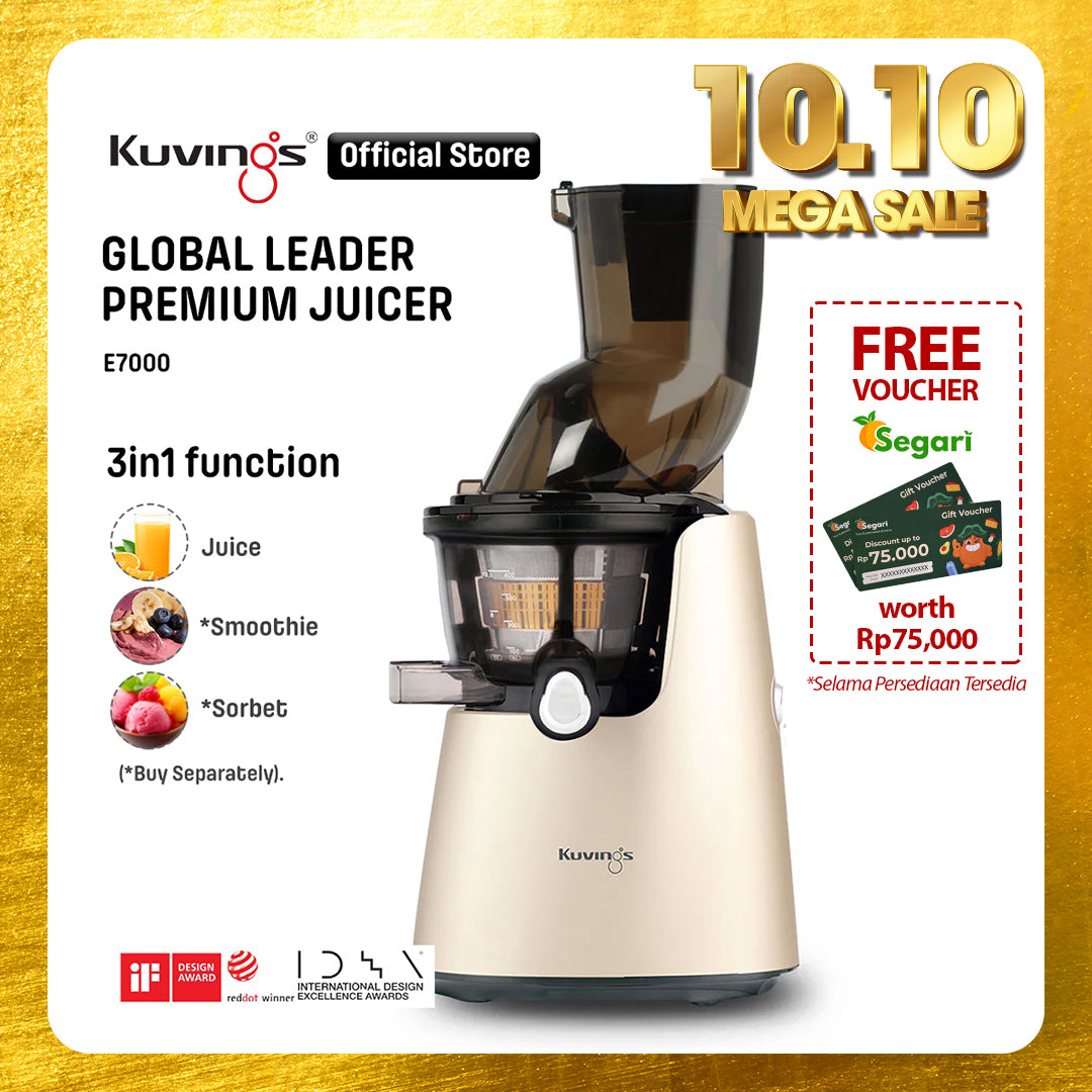 - Juicer Kuvings menyeragamkan sel tanaman dalam proses memeras bahan dengan lembut sehingga dapat diserap 3,8 kali lebih cepat oleh tubuh dan nutrisi pada buah dan sayuran.
